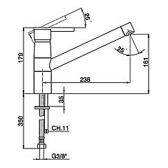 • Material: Messing • Oberfläche: Verchromt • Bedienung: Einhebelmischer • Schwenkauslauf: 360° • Integrierte Temperatur- und Mengenbegrenzung • Höhe: 179 mm • Auslaufhöhe: 161 mm • Ausladung: 238 mm • Durchflussmenge bei 3 bar: 12,6 l/min• Ersatz-Kartusche Bestell-Nr.: 93 146 51